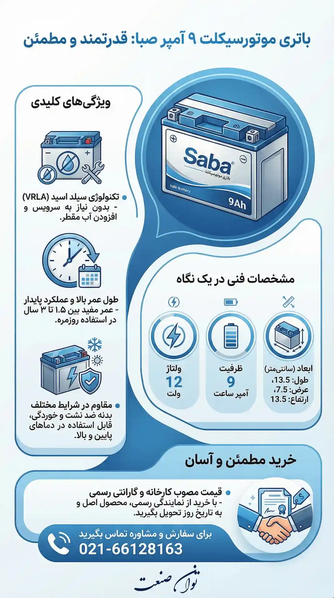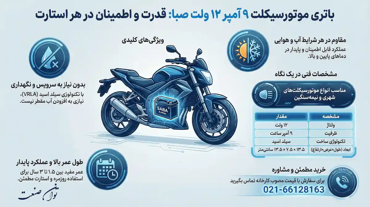 باتری موتورسیکلت ۱۲ ولت ۹ آمپر صبا چیست و چه کاربردی دارد؟